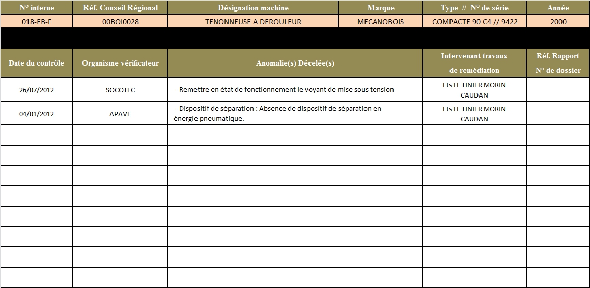Fiche récapitulative des contrôles