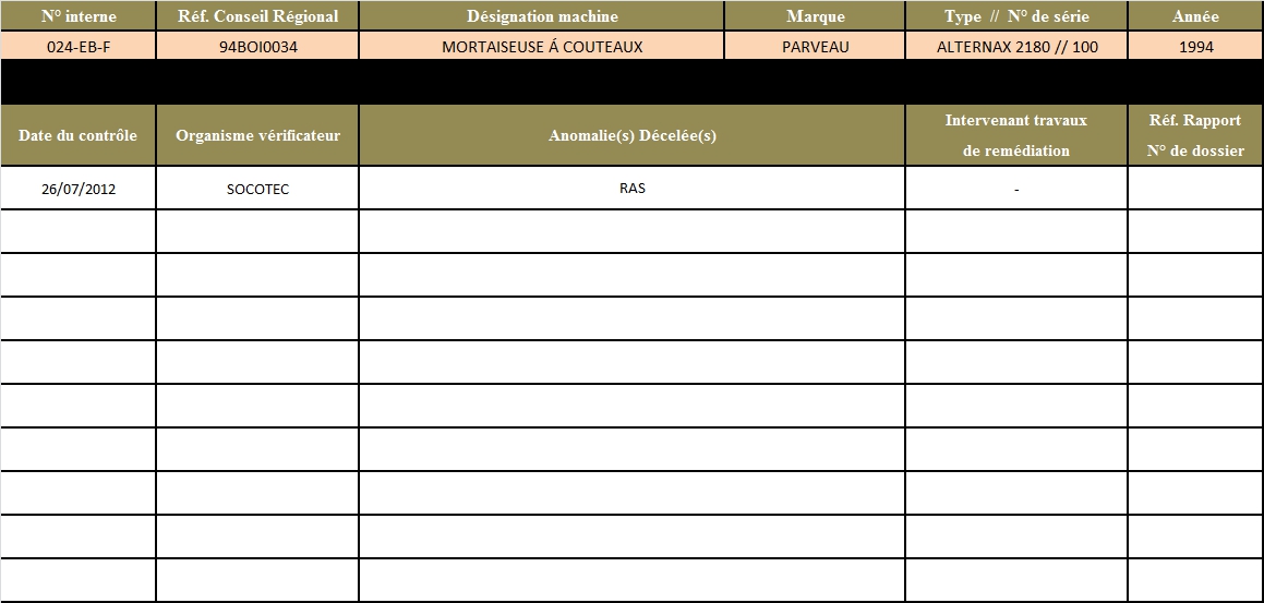 Fiche récapitulative des contrôles