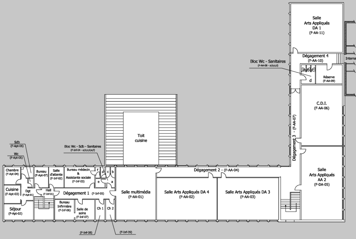 Zone F - Cuisine - Infirmerie - Salle de D.A.